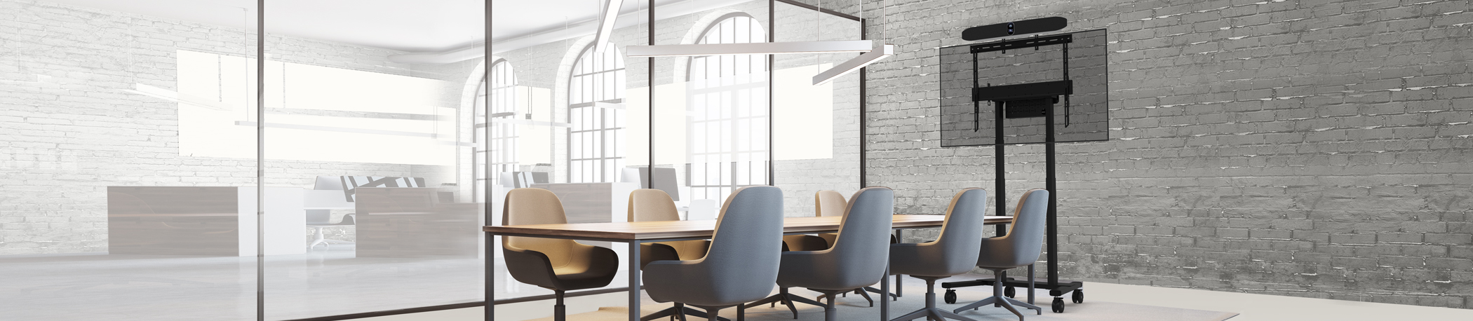 Meet the AV2-500BL: Neomounts universal videobar kit. The AV2-500BL videobar kit is compatible with most videobars*, PTZ cams and soundbars, including Logitech Rally Plus speakers.