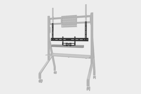The very sturdy, stable and versatile kit can be installed either above or below the screen and is also suitable for a dual screen set-up. For maximum adaptability, both the videobar support and the backplate brackets can be independently adjusted in height.