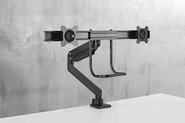 The gas spring, full motion NM-D775DXBLACK monitor arm offered the right solution. The monitor arm with crossbar is easy to adjust in height and depth, and the 180° stop mechanism is ideal for use in combination with a partition panel or safety screen such as the NS-GLSPROTECT100. These durable glass safety screens offer a smart solution for a safer workplace. The THINCLIENT-01 also provides a smart storage solution for the thin client PC.